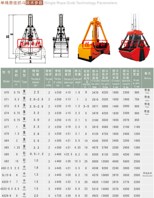 液壓抓斗 | 電動抓斗 | 電動抓斗 |