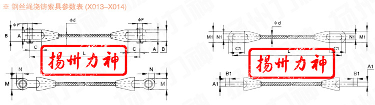 開式澆鑄鋼繩索具 | 閉式澆鑄鋼繩索具 | 貨號(ITEM NO):X013 | 貨號(ITEM NO):X014 |