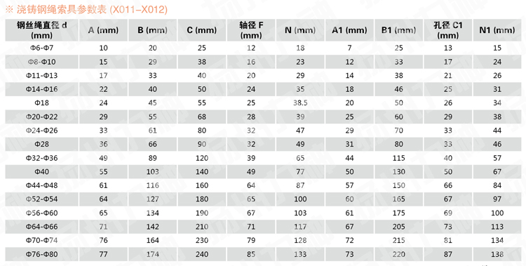 |  |  | 澆鑄索頭 | 鋼拉桿索頭 | 壓制鋼繩索具 | 貨號(ITEM NO):X015A | 貨號(ITEM NO):Y005A | 貨號(ITEM NO):X007A |